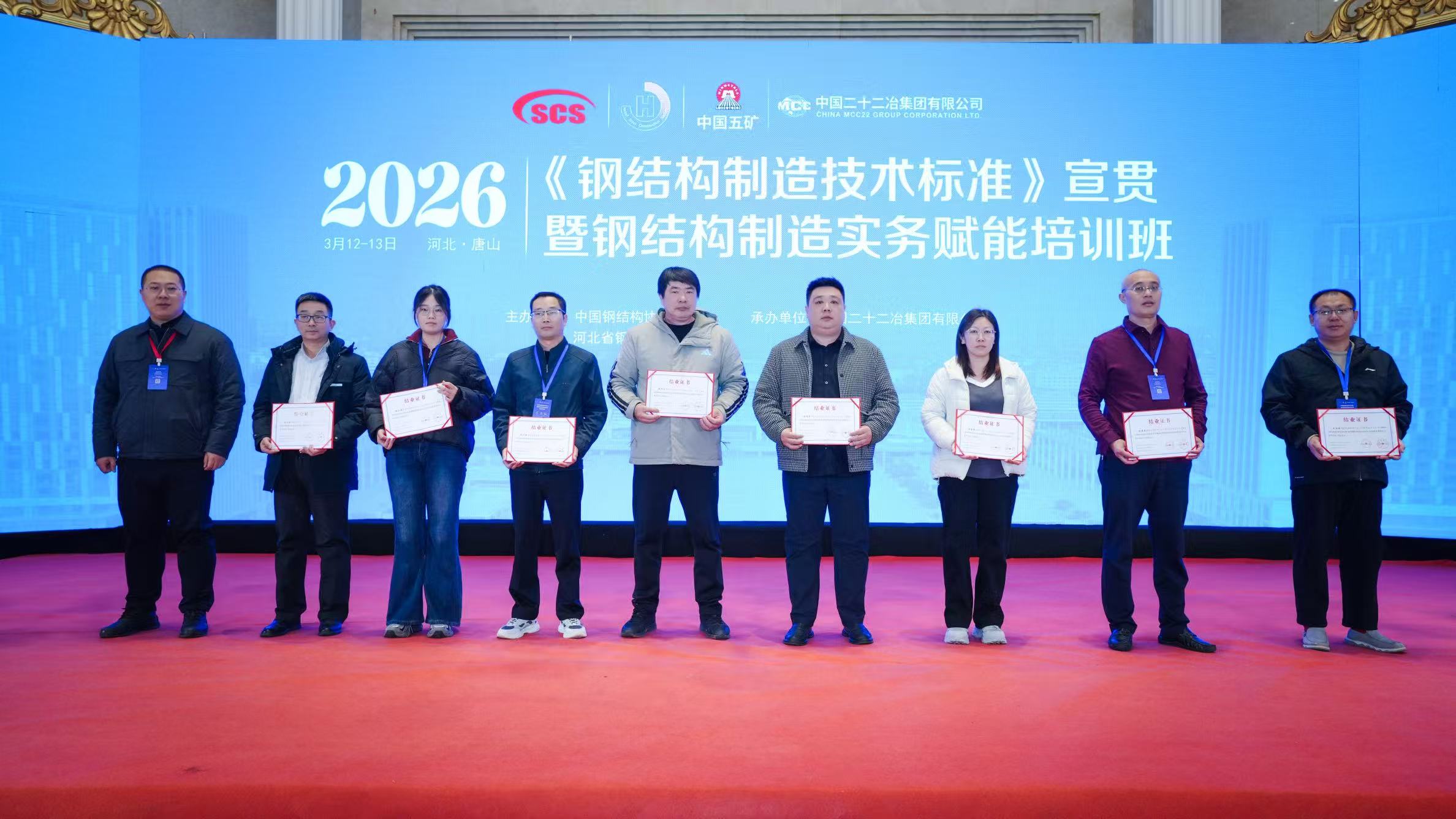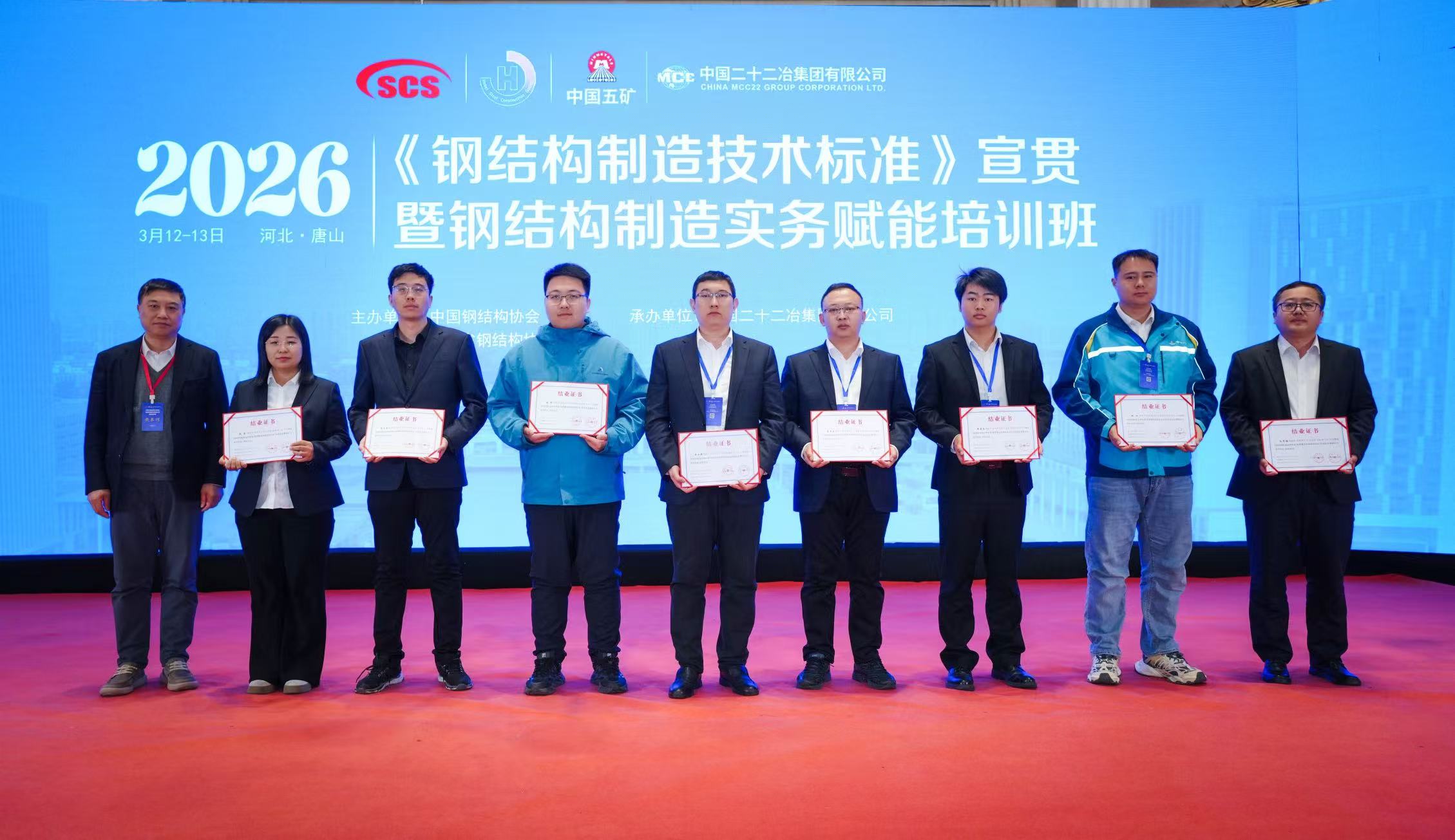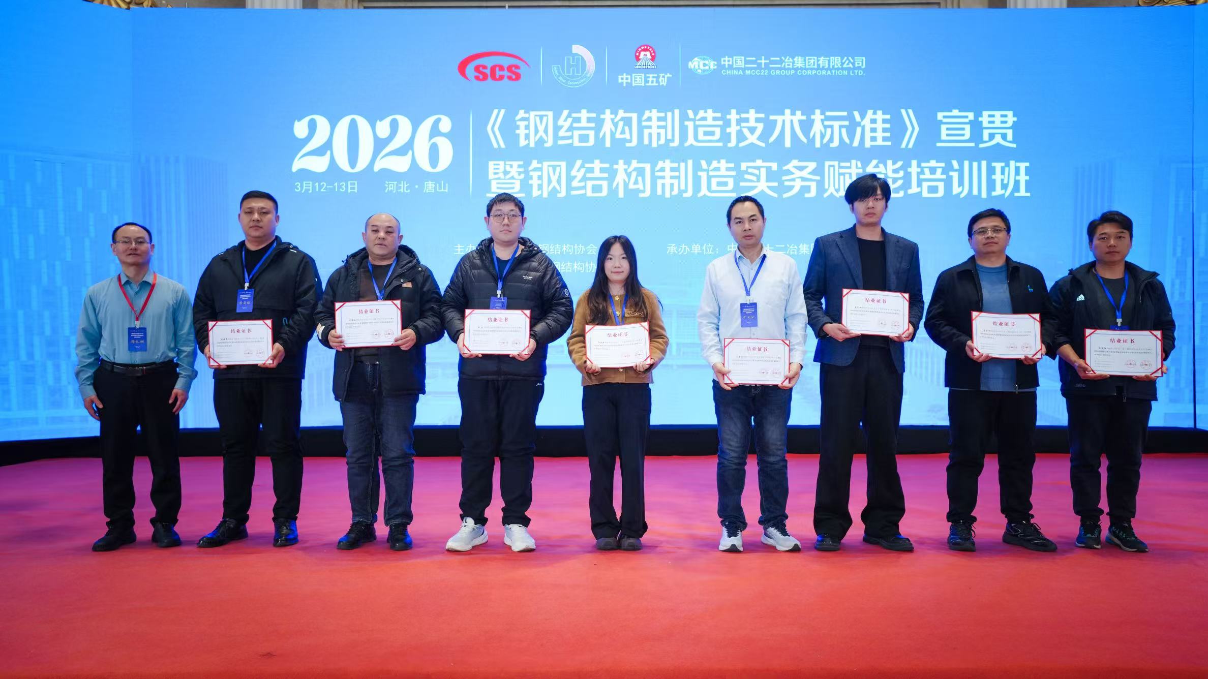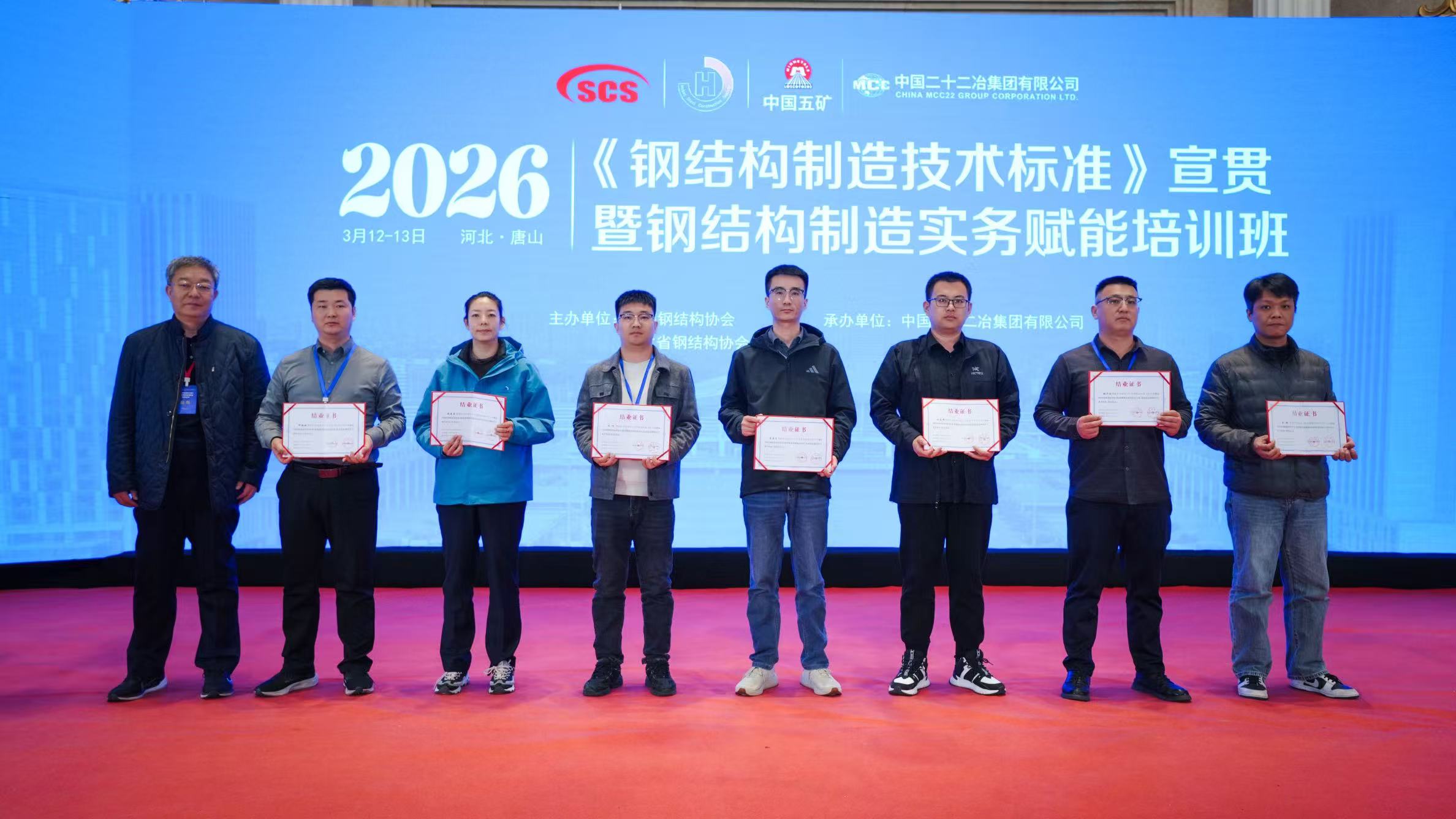 2026年3月12日至13日,2026年第一期“钢结构制造技术标准宣贯暨钢结构制造实务赋能培训班”在河北唐山成功举办。本次培训由中国钢结构协会和河北省钢结构行业协会联合主办,由中国二十二冶集团有限公司协办,上海虎啸电动工具有限公司提供支持。来自全国各地的100余名钢结构制造企业的负责人和生产技术人员参加培训。