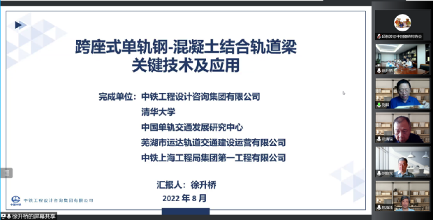 2022年8月27日,中国钢结构协会在北京以线下线上结合的方式,组织召开了“跨座式单轨钢-混凝土结合轨道梁关键技术及应用”科技成果评价视频会。该成果由中铁工程设计咨询集团有限公司、清华大学、中国单轨交通发展研究中心、芜湖市运达轨道交通建设运营有限公司、中铁上海工程局集团第一工程有限公司等单位联合完成。