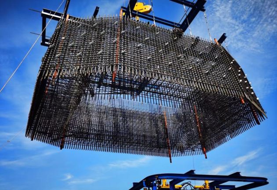 提出了钢筋网片、块体等装配化钢筋骨架结构,发明了基于网片立体弯折、块体整体组拼的复杂钢筋部品成型方法,研制了大直径钢筋网片、块体等柔性制造及组拼装备,机械化成型率≥70%,作业人员减少≥60%,建立了钢筋部品“制作-组拼-安装”全过程精度控制标准体系及智能测控方法,主筋对接合格率达100%,大幅提升了桥梁钢筋部品的工业化智能化建造水平。