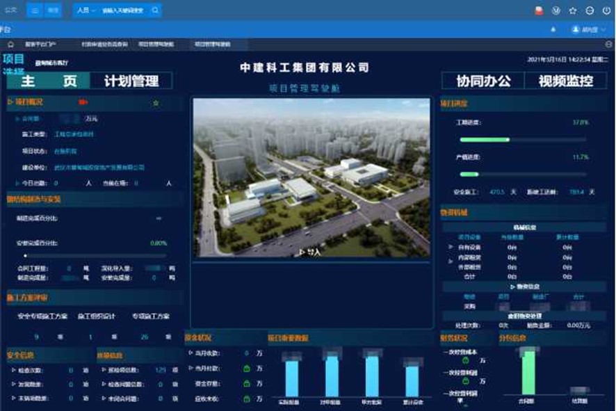 (2)研发了大型城市综合体建造的数字化技术。提出了装配式多层大悬挑钢结构数字化预拼装与智慧建造技术,结合BIM技术及物联网,对悬挑钢结构精准预起拱和卸载,运用装配式钢结构建筑信息化管理技术,实现工程多方协调合作和全寿命周期管理。