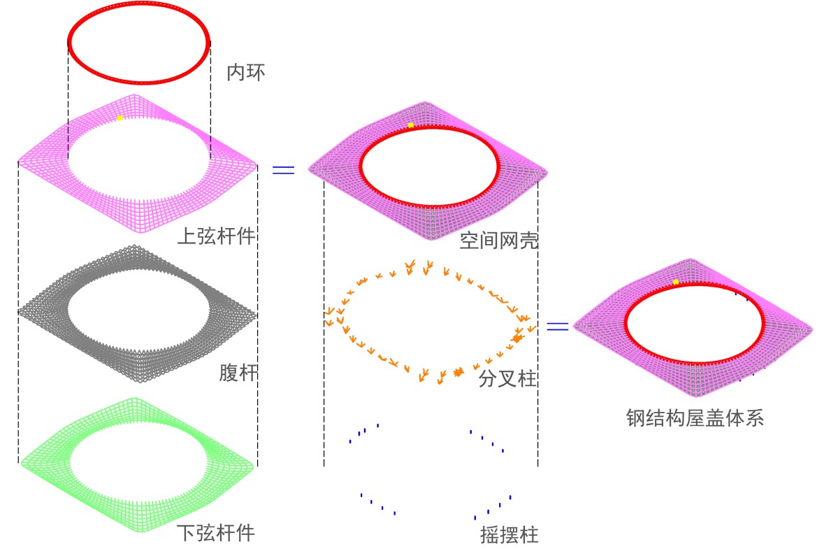 在受力清晰、化繁为简的结构体系中创新采用摇摆柱+分叉柱支撑体系,实现了屋盖结构竖向力和水平力的合理传递。