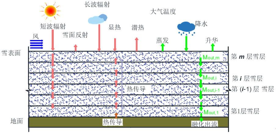 图3 屋面融雪过程中的能量和质量交换