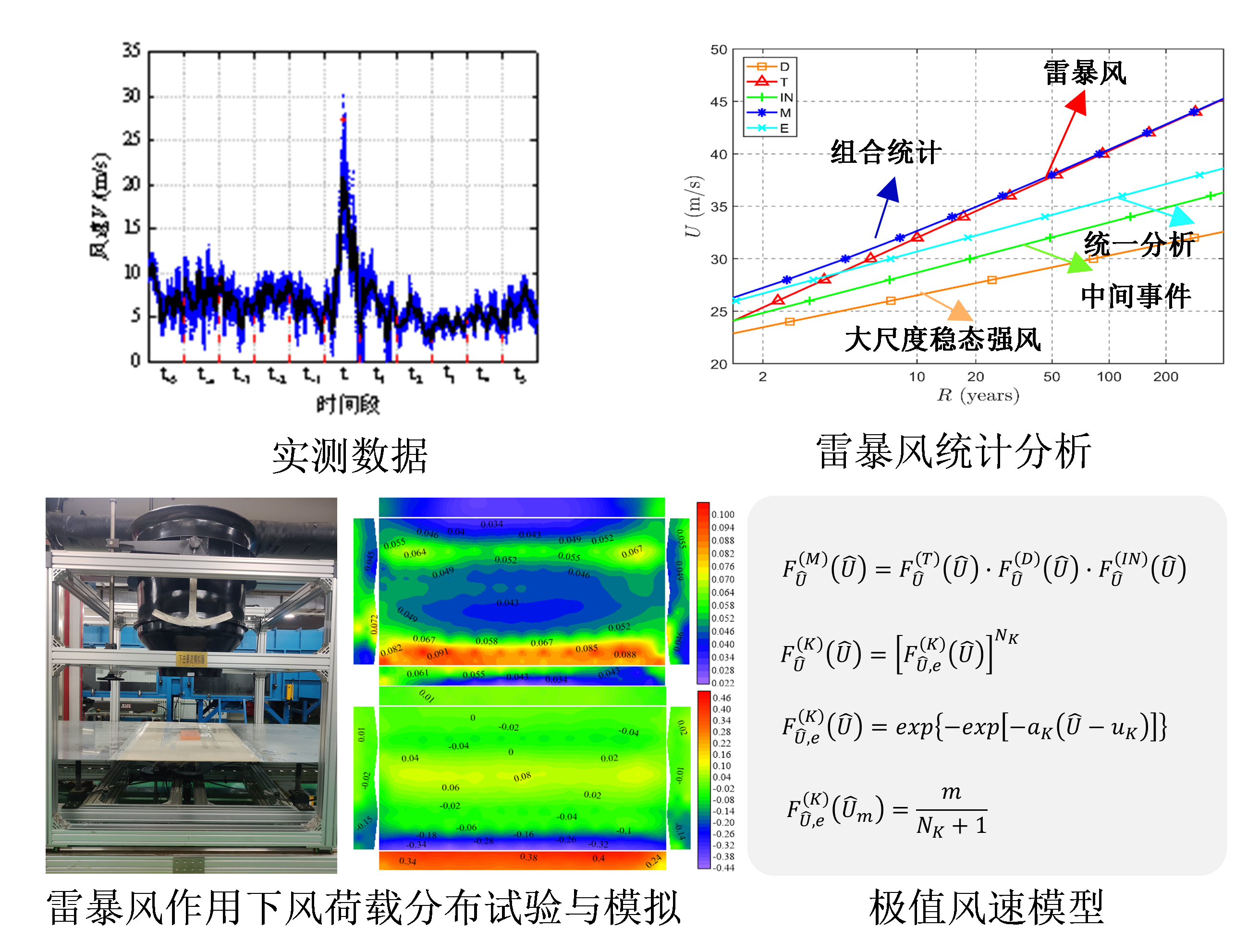 图1 考虑非平稳风致扰动的雷暴风风场时空演化模型与荷载分布特征