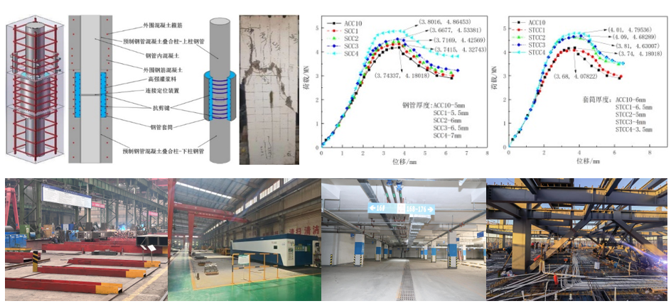 (3)研发了装配部件安装定位装置等构件加工与施工关键技术,有效缩短了施工周期;优化了新型板柱节点、套筒连接钢管混凝土叠合柱受力性能试验装置,提高了抗倒塌性能测试效率;建立了钢-混凝土组合结构的抗倒塌设计方法、钢管混凝土叠合柱套筒灌浆连接承载力计算方法,有效解决了设计与施工协同优化痛点问题。