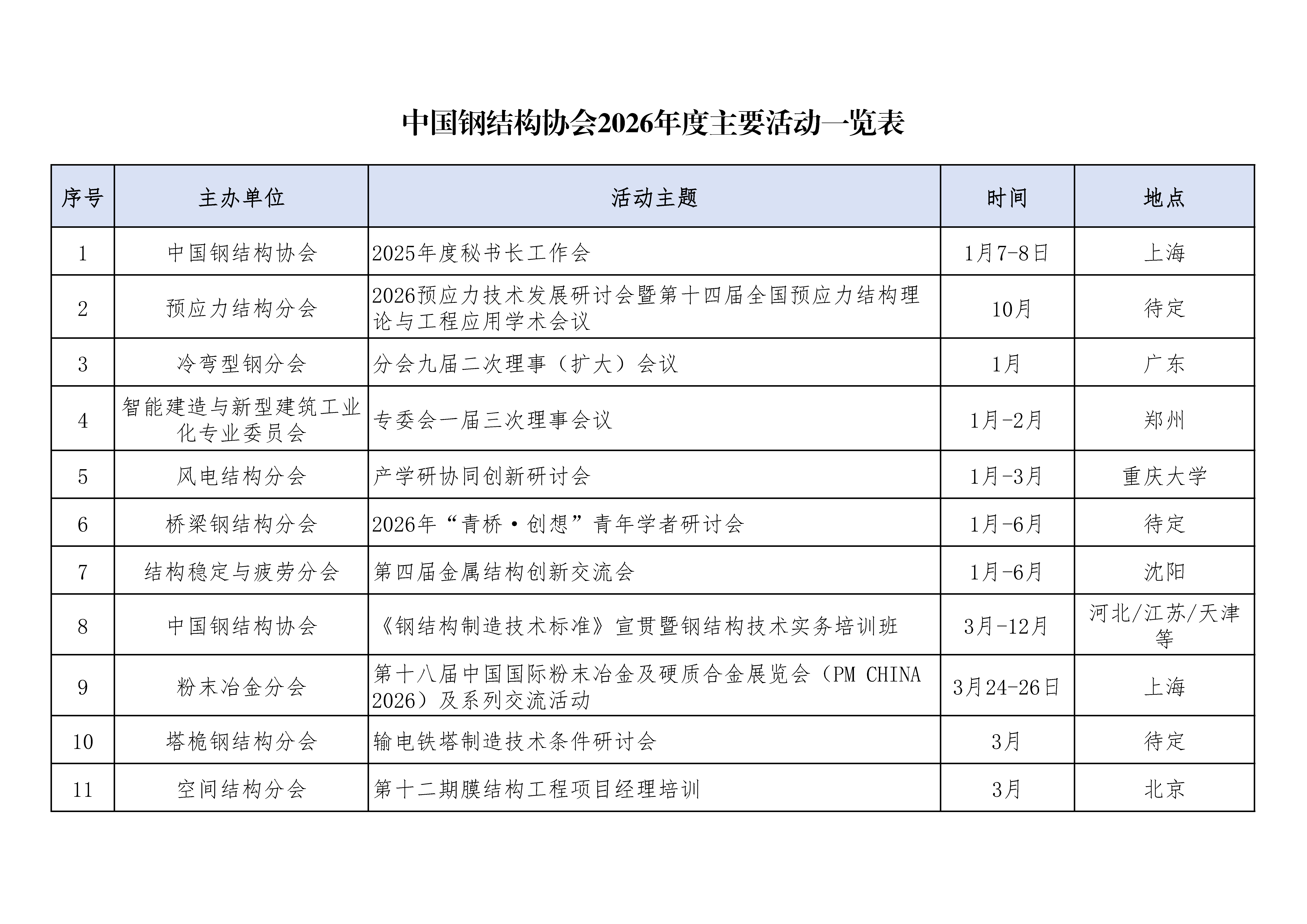 中国钢结构协会2026年度主要活动一览表.pdf