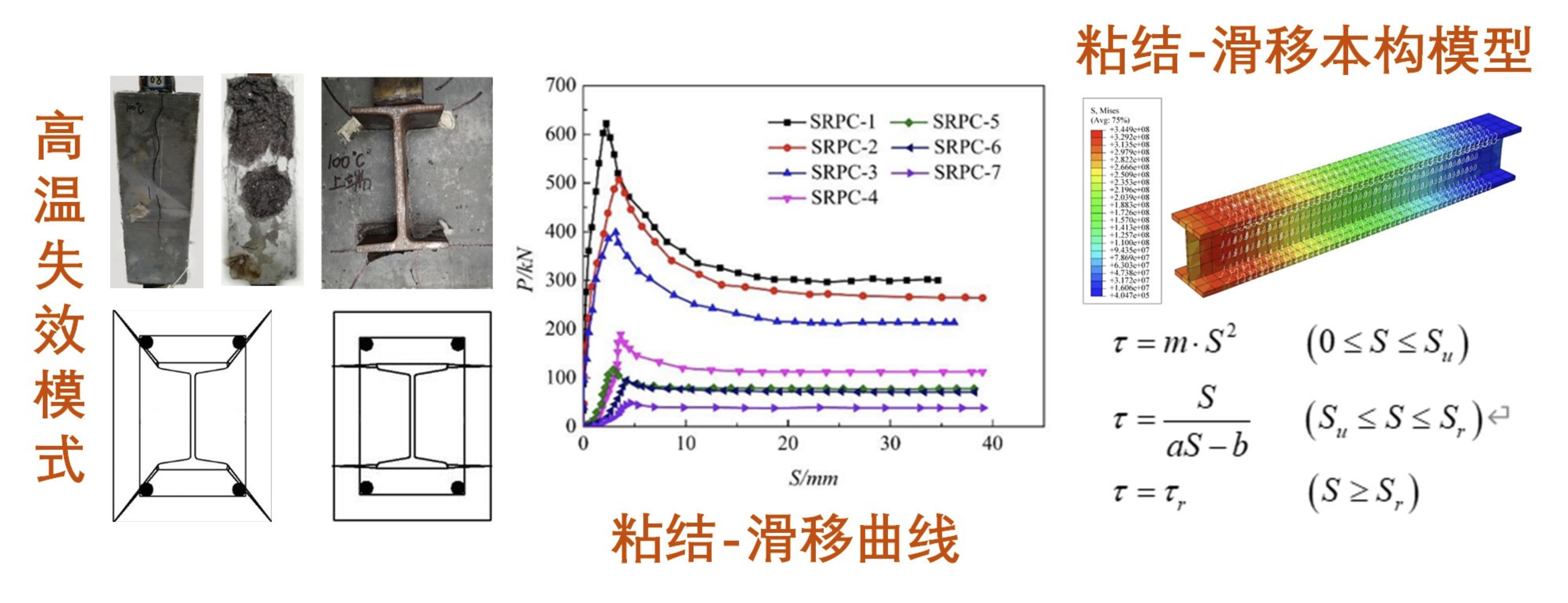 揭示了高温下型钢与活性粉末混凝土之间的粘结滑移机理,建立了粘结滑移本构模型,实现了构件粘结退化与滑移响应的准确预测与数值模拟。