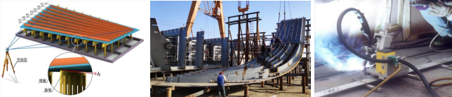 2)研发了弯扭空间弧形板件顺压成型及检测成套技术,提高了弯扭空间弧形板加工精度,解决了异形扭曲板加工困难的技术难题。