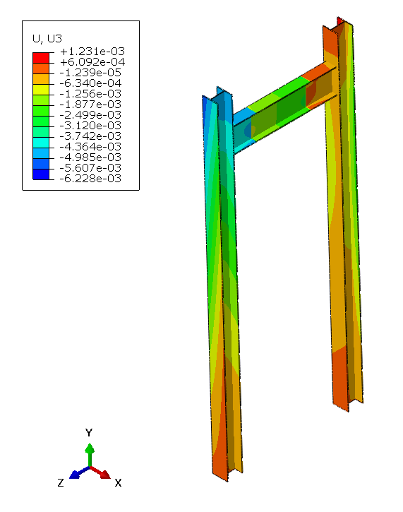 图2 单层单跨钢框架采用热弹塑性法计算的横向残余变形结果