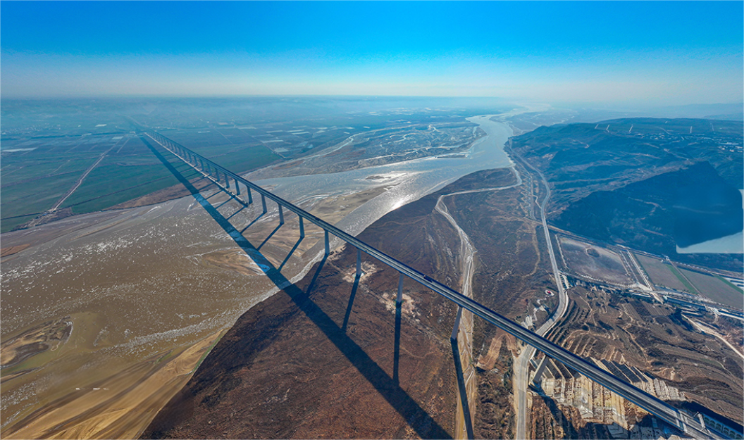 临猗黄河大桥全长5427m,其中主桥长3816m,上部构造采用(112+28×128+120)m等高度连续钢箱组合梁,创顶推总长度、单联最大顶推长度、单桥耐候钢使用量、顶推同步控制千斤顶数量四项世界之最。