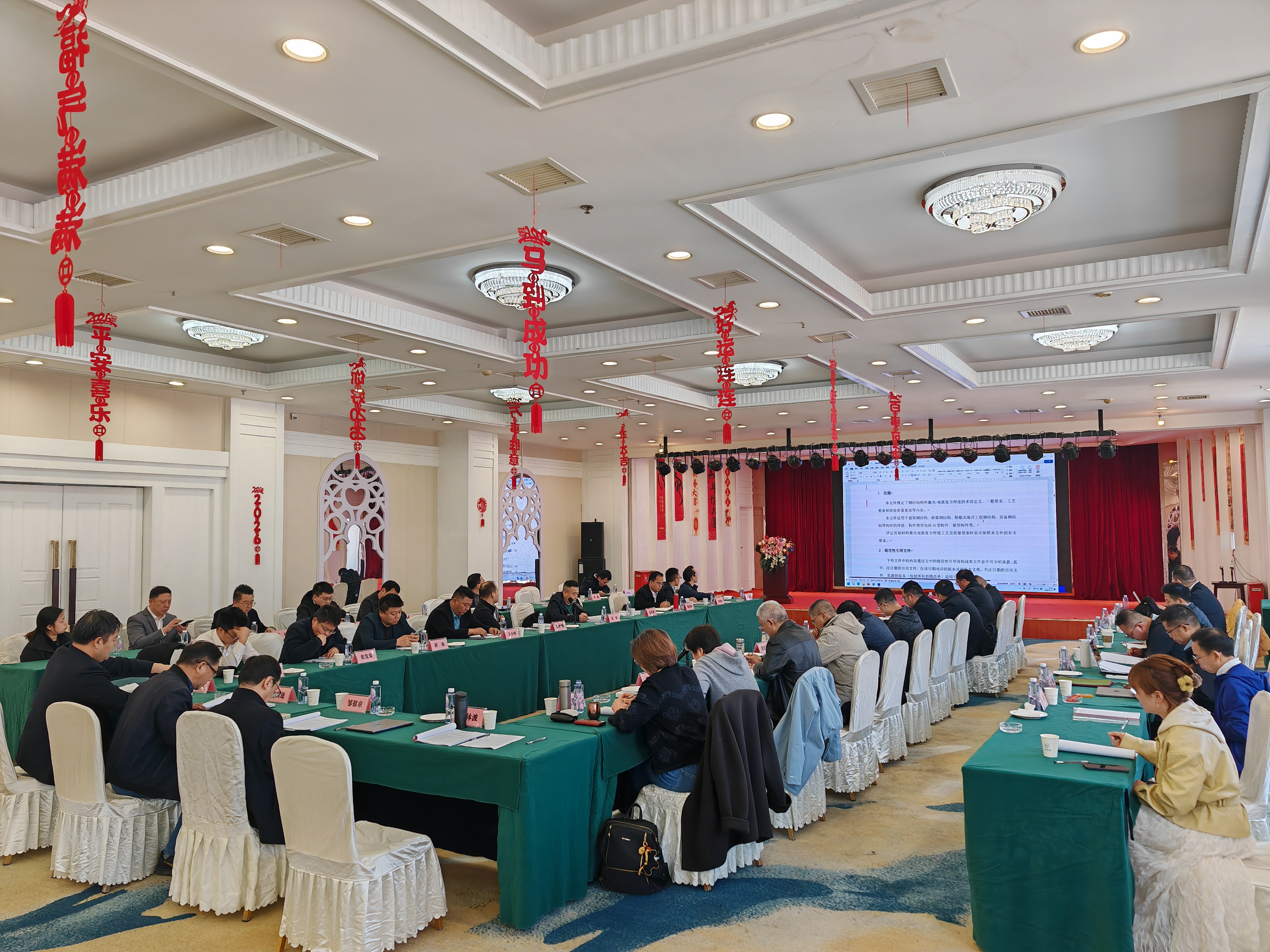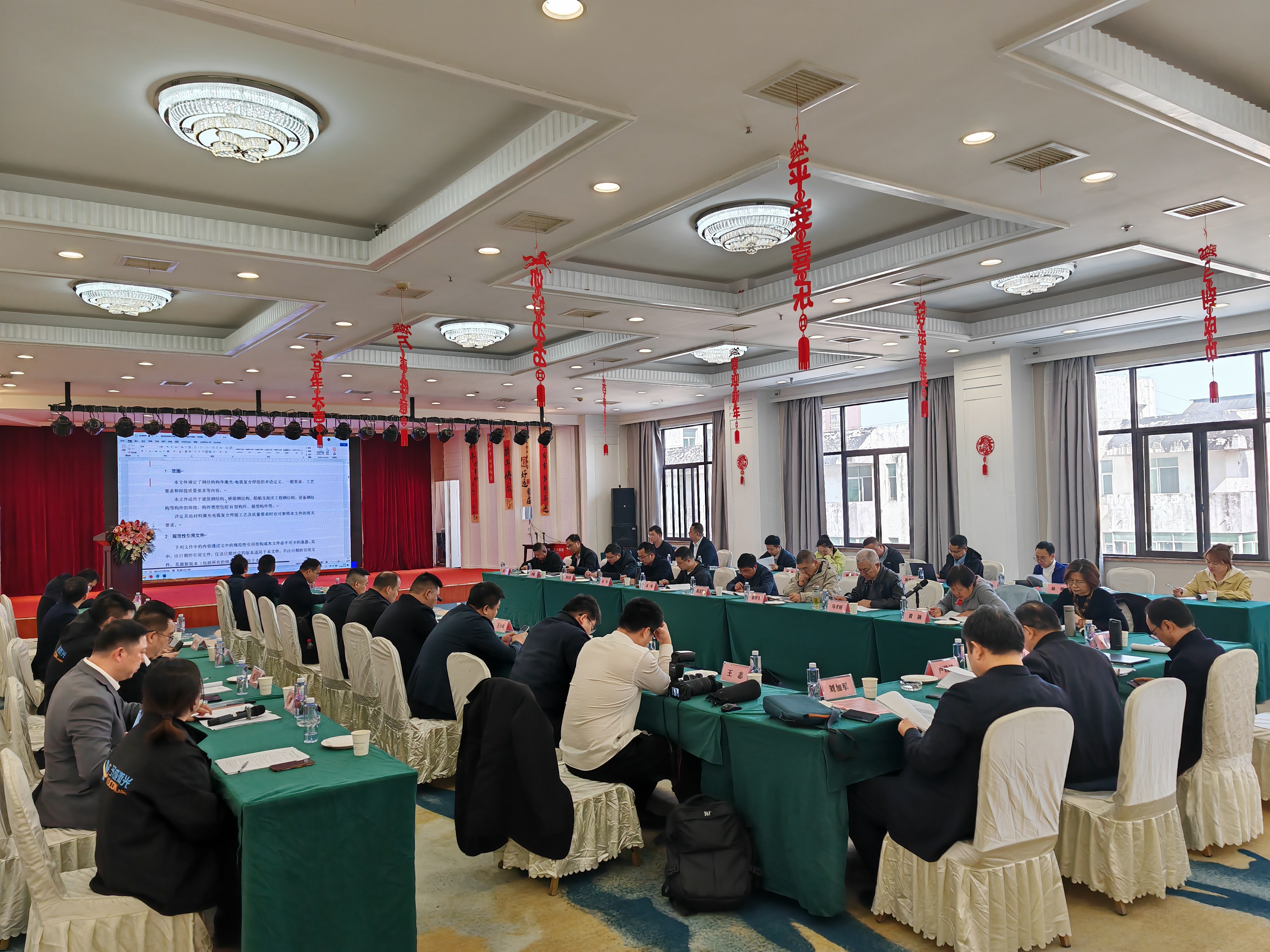 审查会邀请中国工程建设焊接协会副会长兼秘书长刘景凤教授级高级工程师、华中科技大学武汉光电国家研究中心高明教授、中南建筑设计院股份有限公司陈元坤正高级工程师、东风汽车公司技术中心崔厚学正高级工程师、武汉建工集团股份有限公司钢结构分公司马才旺正高级工程师、武船重型工程股份有限公司张华正高级工程师等7位专家组成审查专家组。上海钢管行业协会副秘书长卢致逵、武汉予成激光智造有限公司董事长邹郁京、中国冶金报社主任刘加军、湖北省钢结构协会秘书长彭吉、北京六建集团有限责任公司孟庆彬、武汉锐科光纤激光技术股份有限公司朱超、武汉一冶钢结构有限责任公司莫芝林、武汉重型机床集团有限公司富泉、东方诚建设集团有限公司闫晓刚、长葛市鑫宽发展科技有限公司王小锋、湖北精工钢结构有限公司张发荣、山西山古科技有限公司薛海、上海昕德承船舶贸易有限公司龙鸣、海德盟数控技术(深圳)有限公司陈锦铭、湖北大万科技有限公司陈煜文、武汉城市职业学院陈淑花、中冶南方武汉建筑设计有限公司张四海、郑州宝冶钢结构有限公司副总经理吝健全、湖北省焊接协会蔡文婷、湖北省钢结构学会宁克洋、华中科技大学姜来合格等编制专家及其他人员参加了会议。