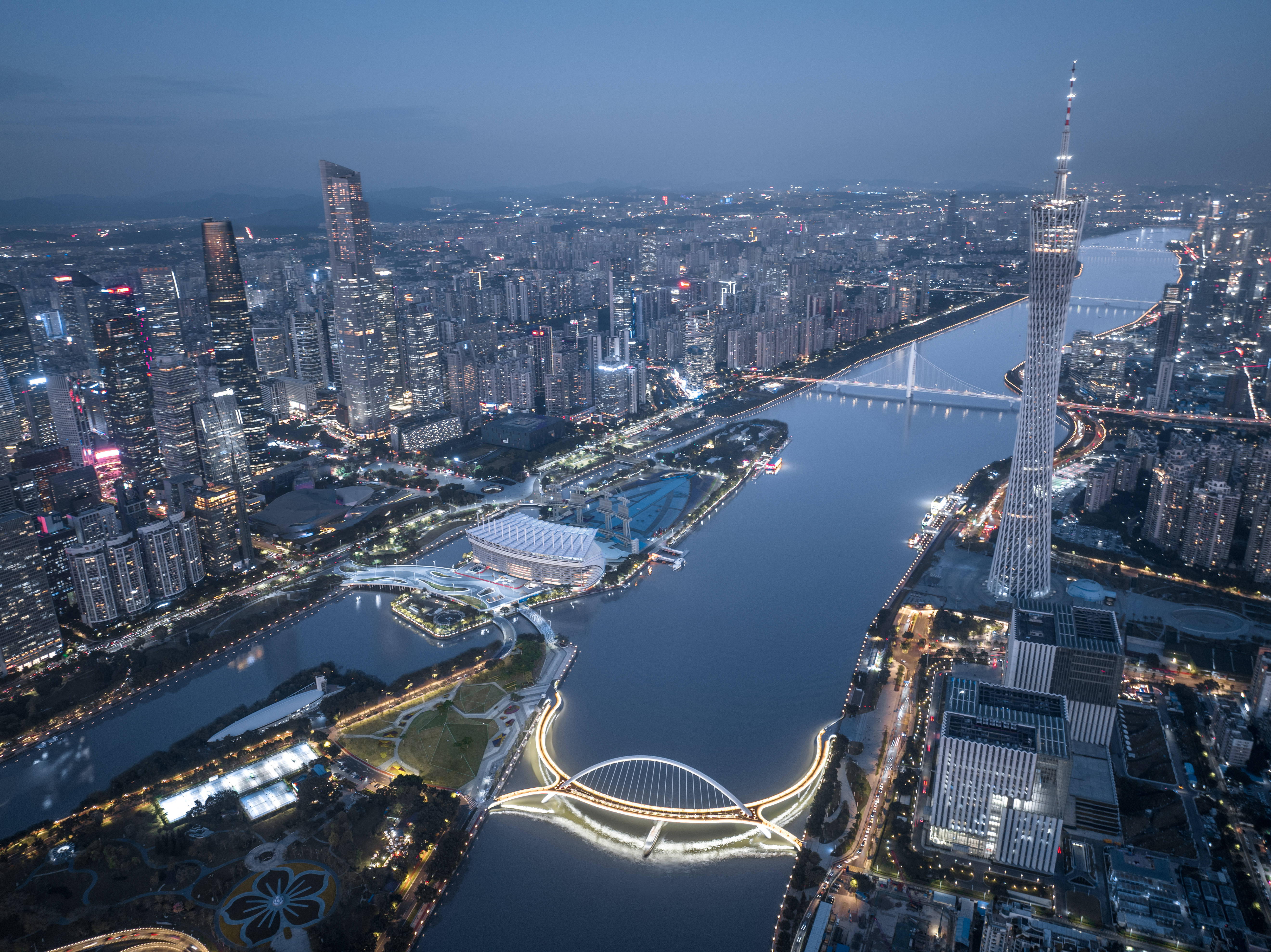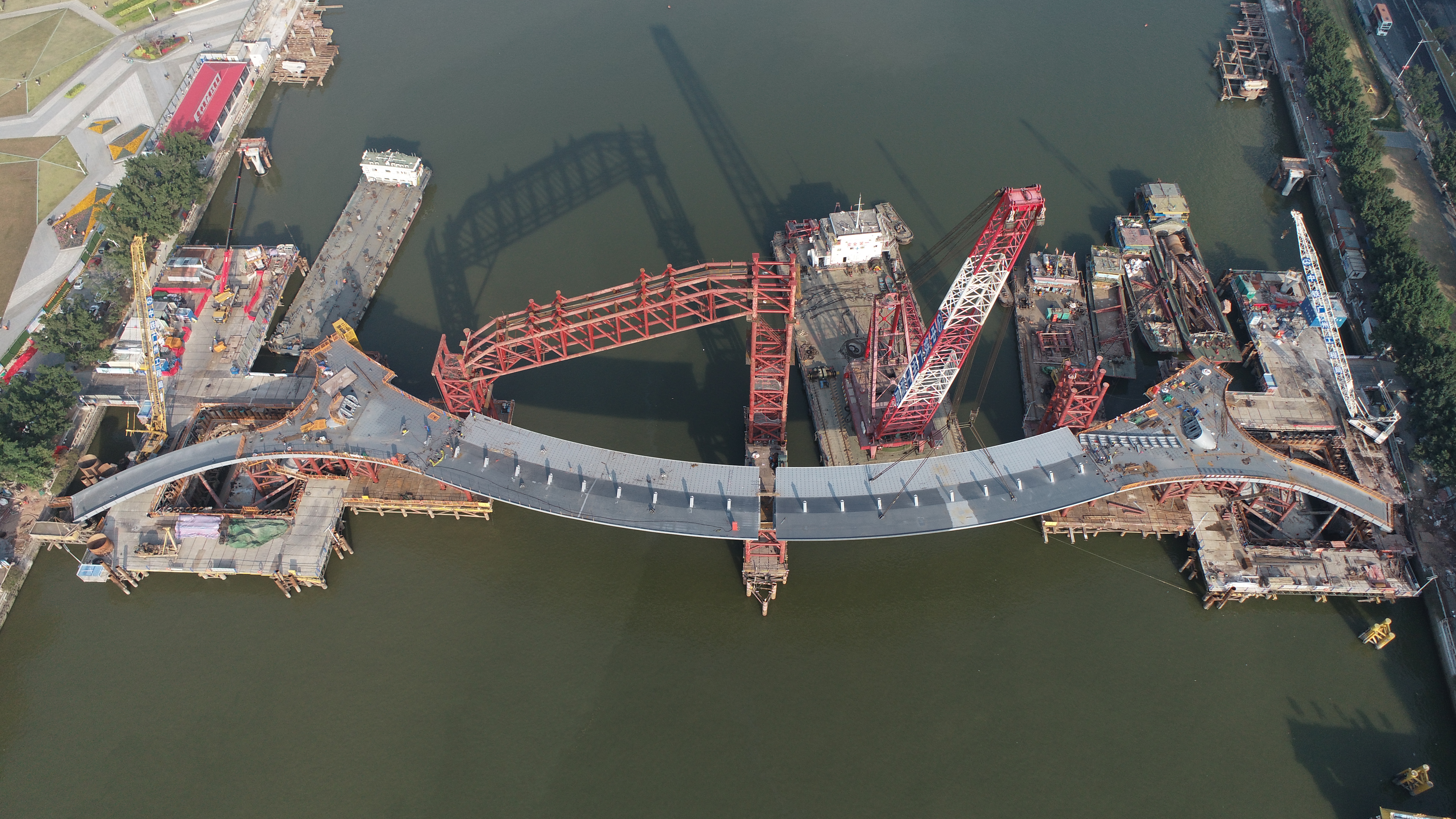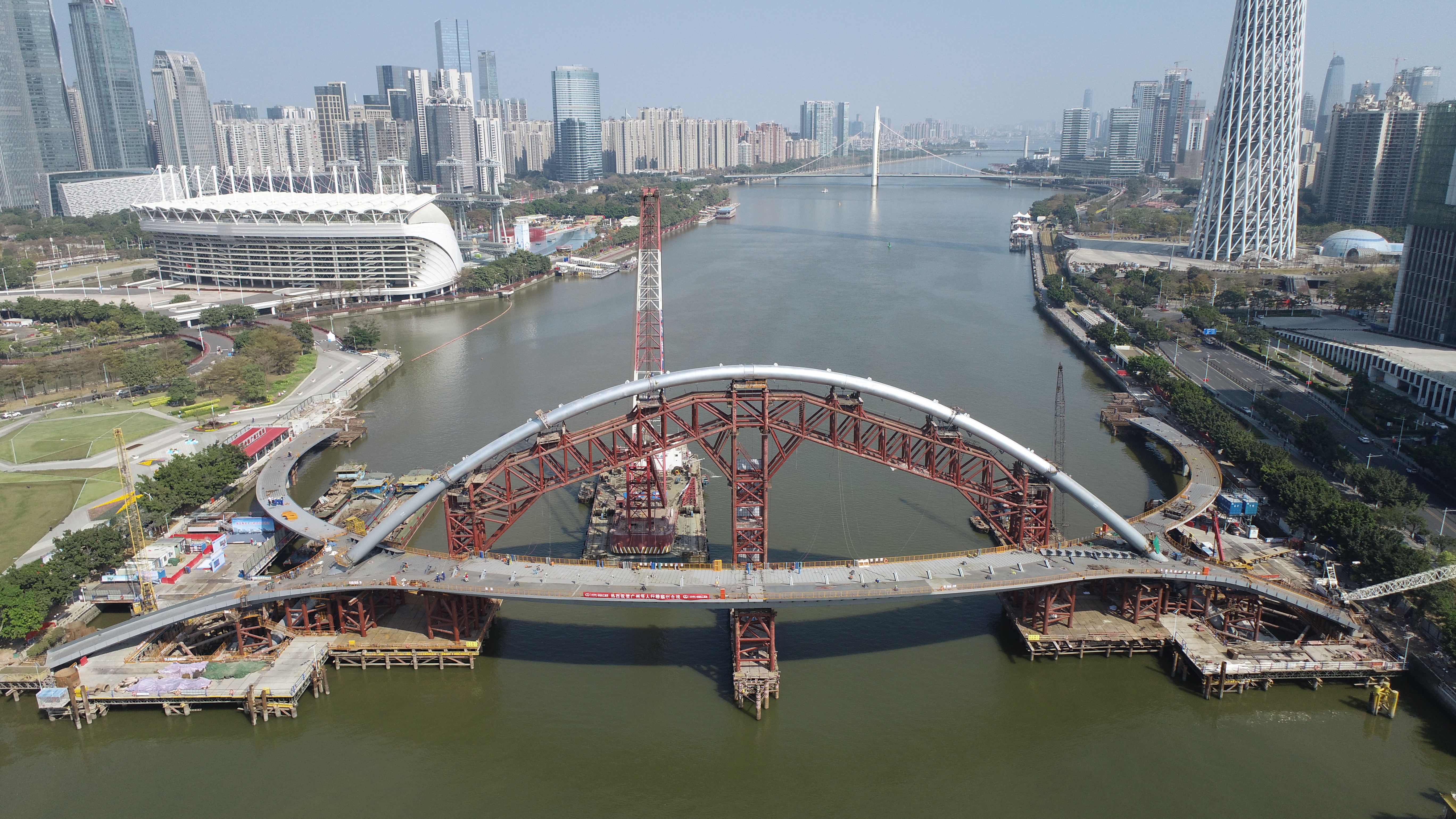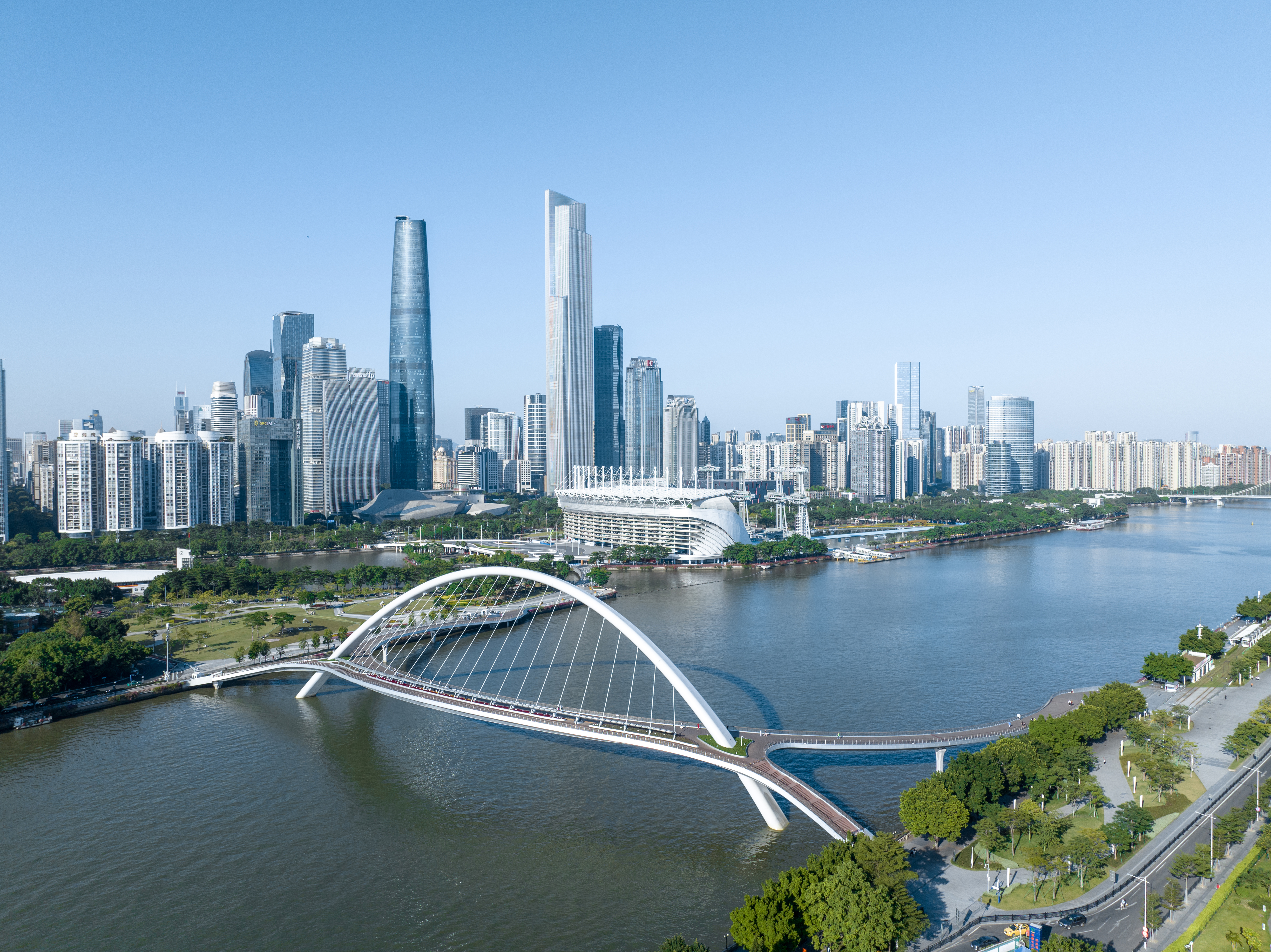 珠江水网穿行而过,江上桥梁设施众多,造型各异,海心沙是城市新中轴与珠江水网的交汇点,为完善城市会客厅基础设施,各参建单位依托广州海心桥,进行大跨城市景观桥美学文化设计与快速建造技术研究,借鉴英国泰晤士河等先进理念,建造一个植根岭南文化、凸显时代气息的城市新名片和国际打卡点。