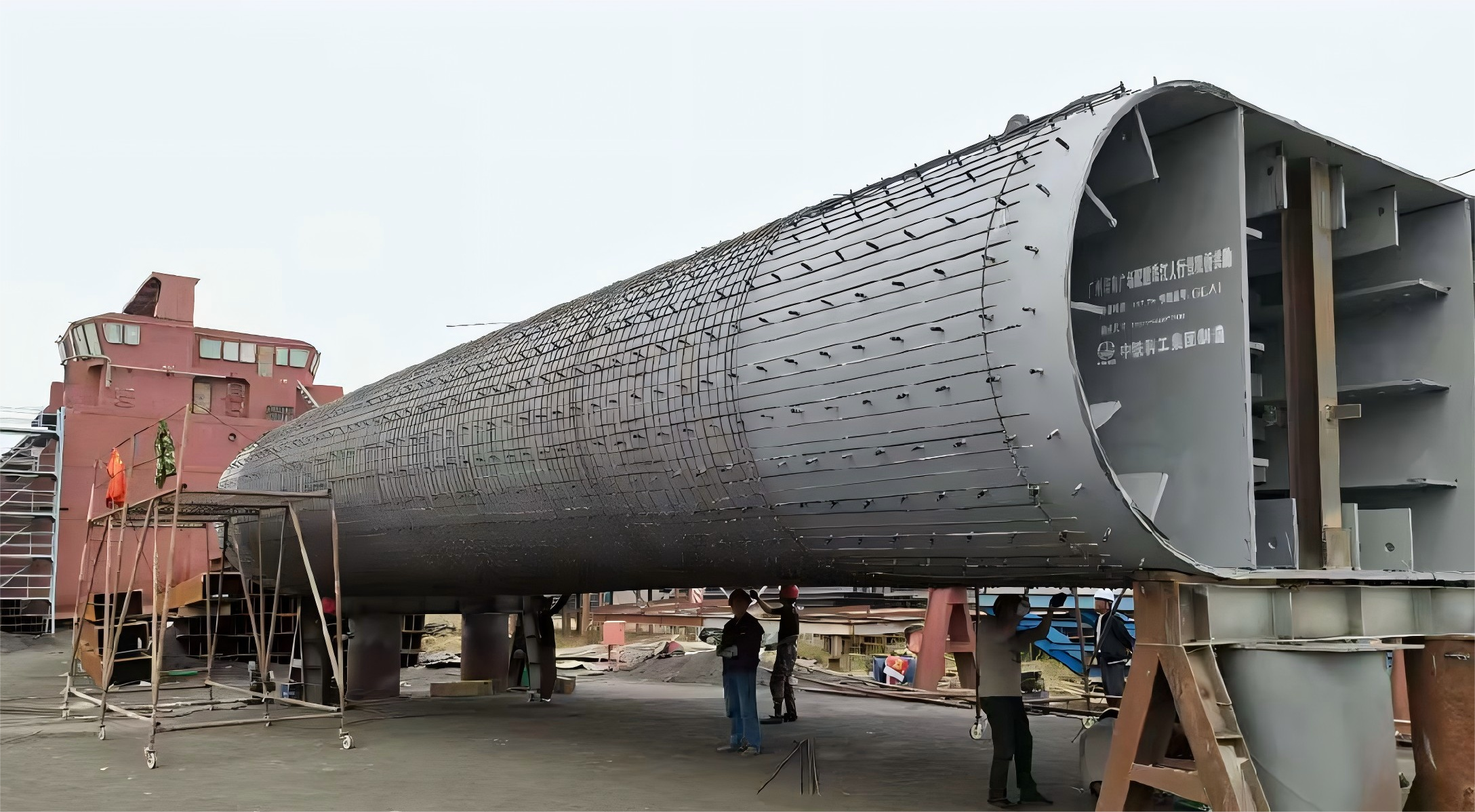 (3)设计了深水浅覆盖层的组合钢桩围堰,提出了拱肋涉水段UHPC超高性能混凝土预制与外包相结合的施工工艺,开发了空间形态曲梁斜拱安装定位装置与精调施工方法,实现了深水、浅覆盖层繁忙航道上的大跨曲梁斜拱景观桥的快速施工。