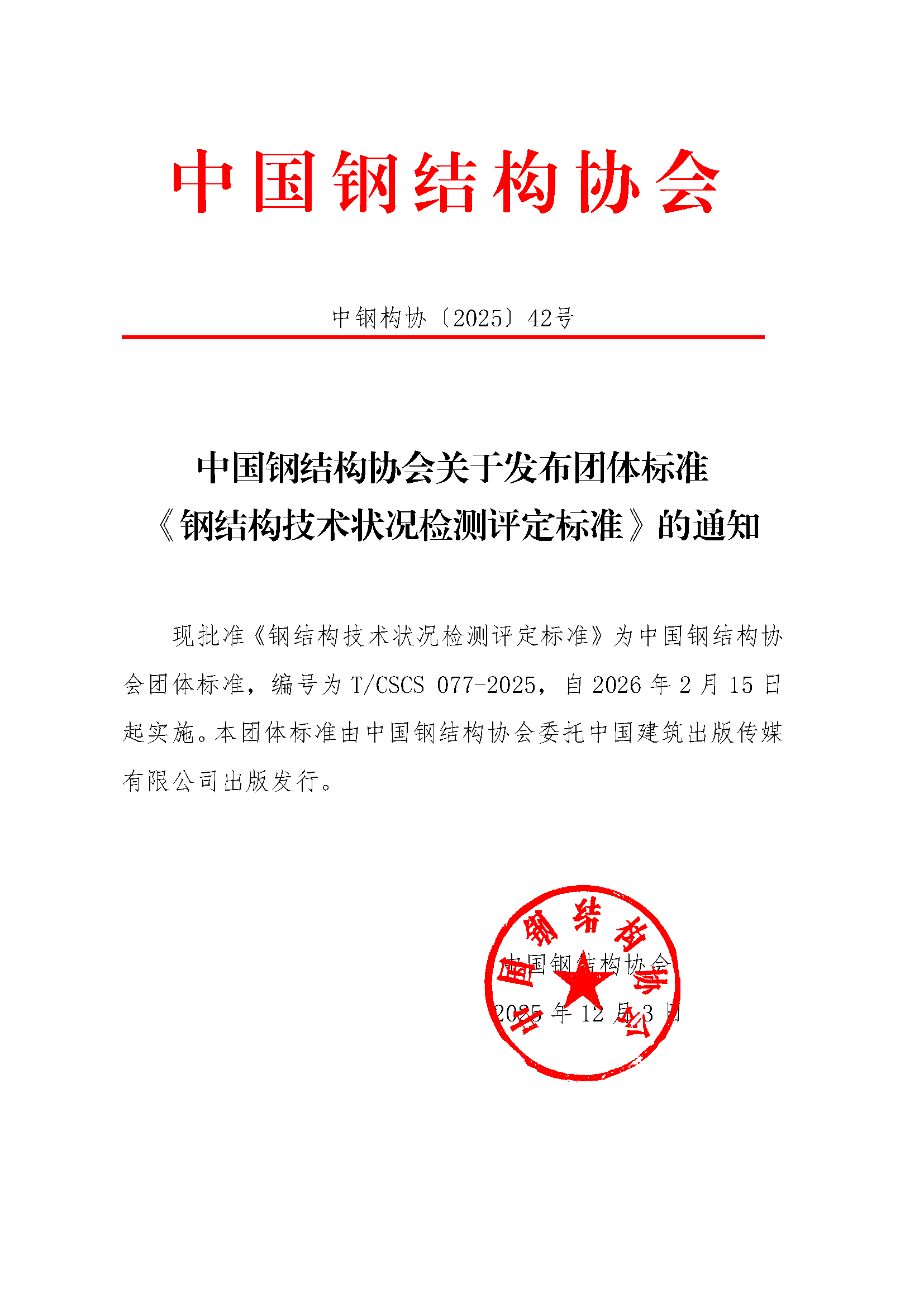 中国钢结构协会关于发布团体标准《钢结构技术状况检测评定标准》的通知