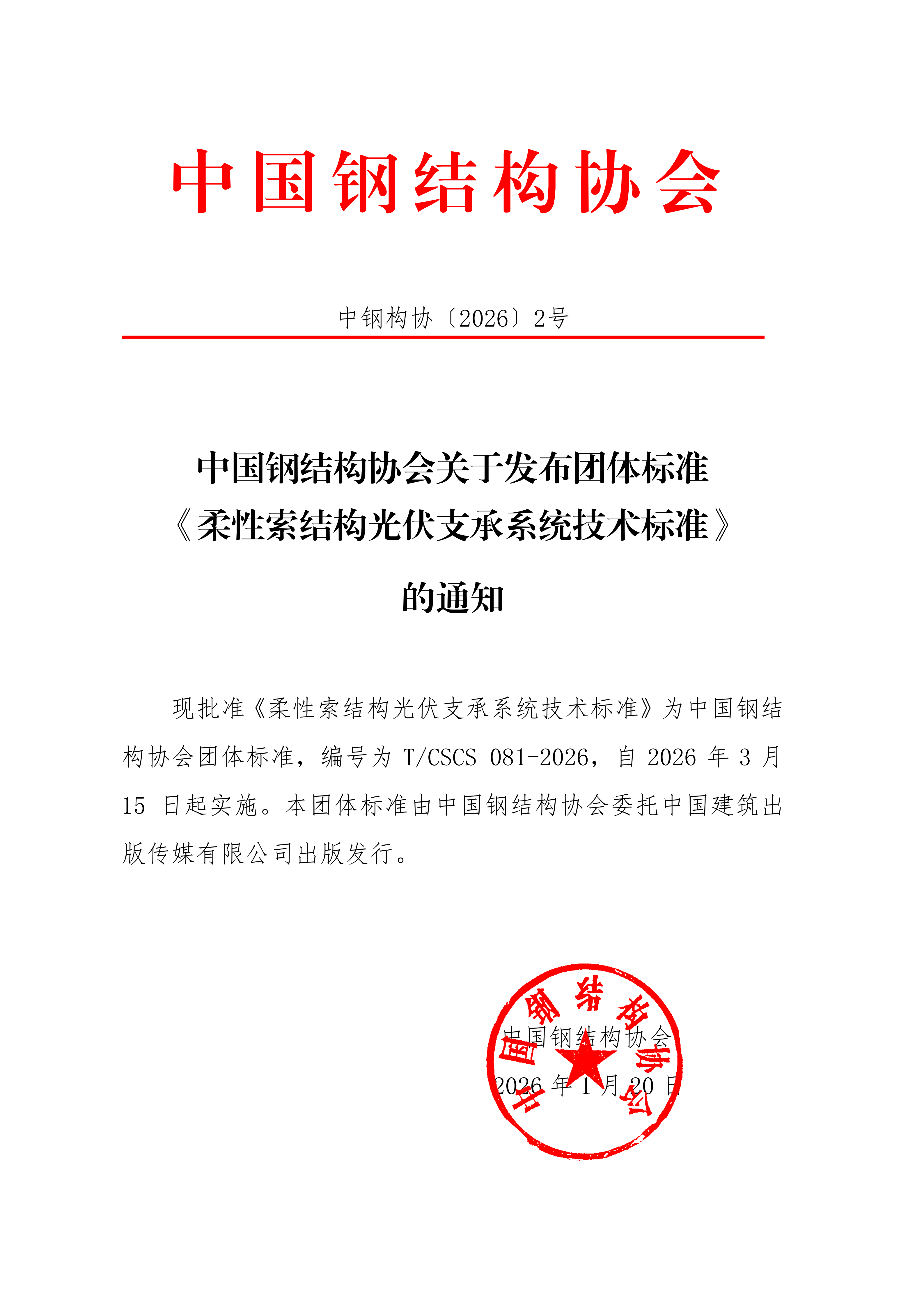 中国钢结构协会关于发布团体标准《柔性索结构光伏支承系统技术标准》的通知