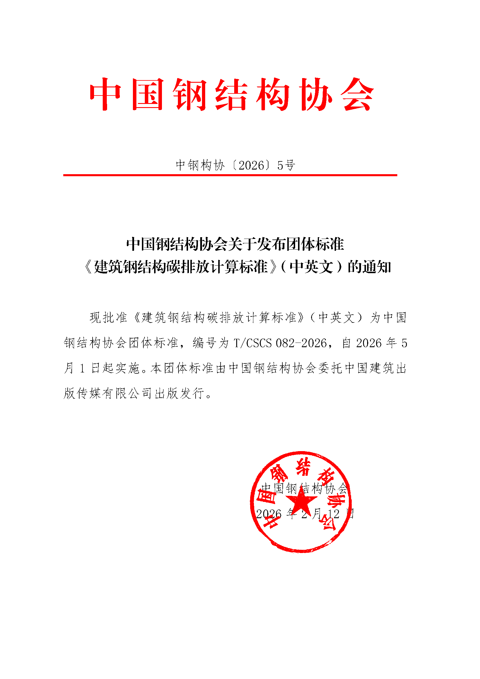 中国钢结构协会关于发布团体标准《建筑钢结构碳排放计算标准》(中英文)的通知.pdf