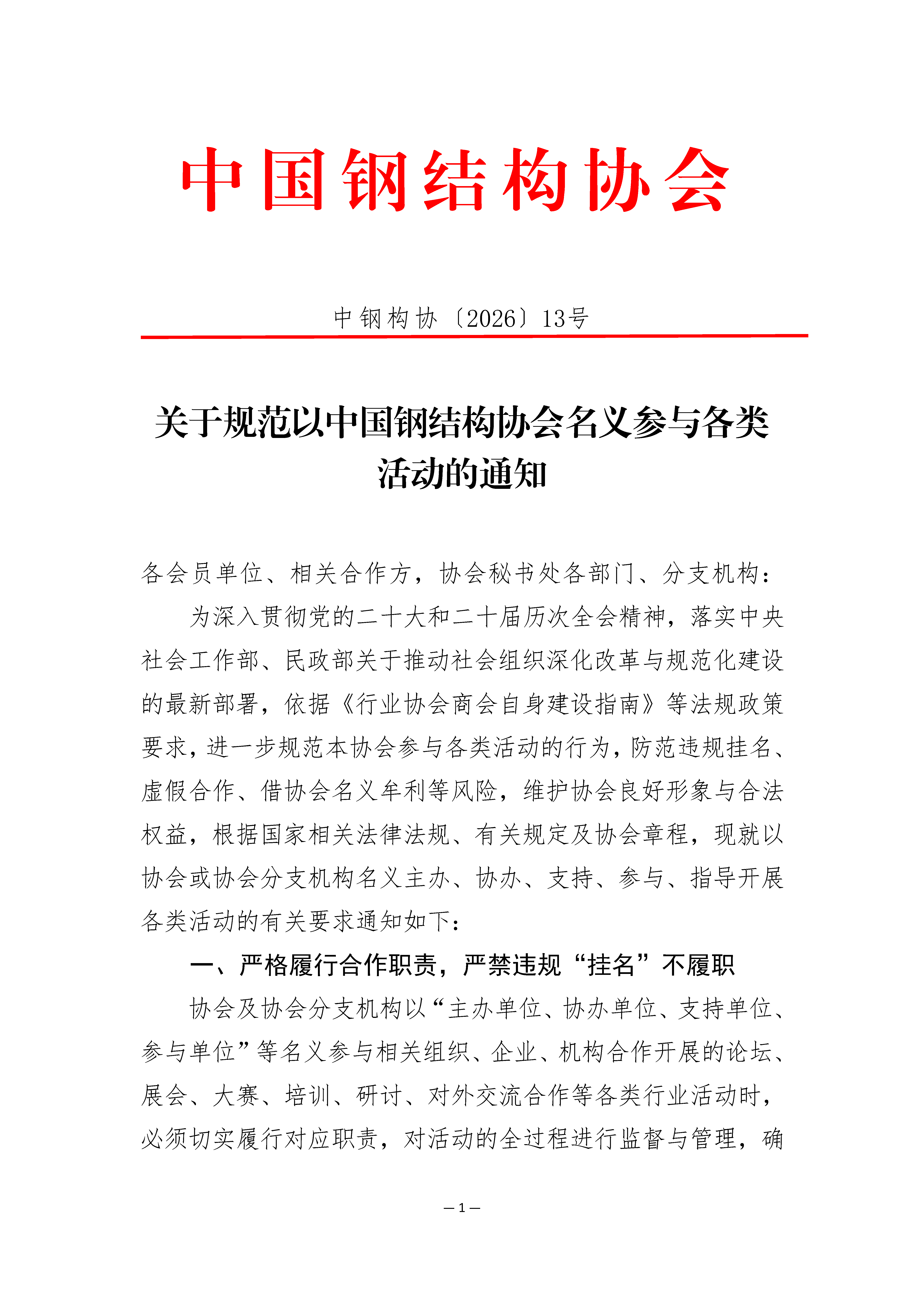 关于规范以中国钢结构协会名义参与各类活动的通知